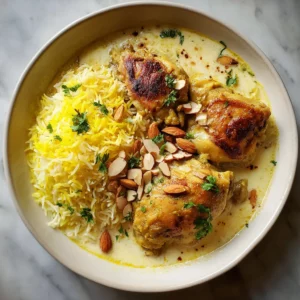 A creamy, gently spiced afghani chicken stew simmered with yogurt and ground nuts, served over fragrant saffron basmati rice.