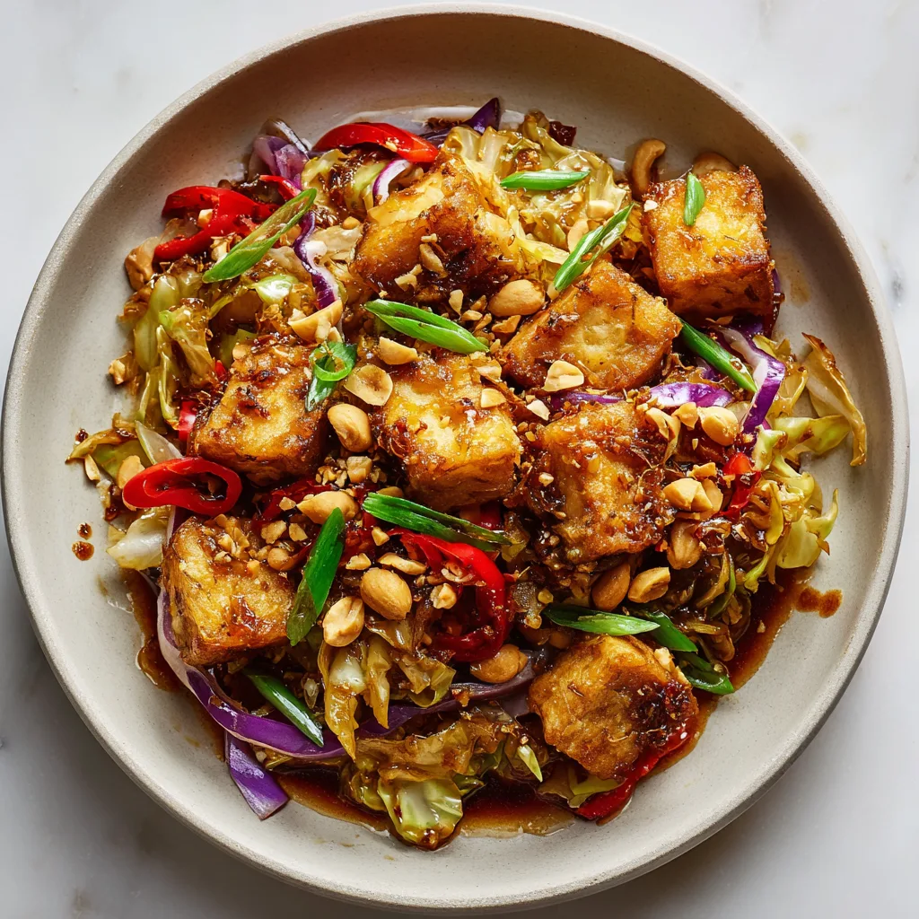 This is my weeknight "I need something loud and satisfying" cabbage recipe vegan style: heaps of shredded cabbage that turns sweet at the edges, bouncy tofu with a crisp shell, and a glossy chili-peanut sauce that clings to everything. It eats like takeout but cooks in one pan, and it's the kind of cabbage and tofu meal that makes you forget you were ever bored by cabbage. The peanuts are non-negotiable for crunch, but I'll give you swaps if you're dealing with allergies or a near-empty pantry.