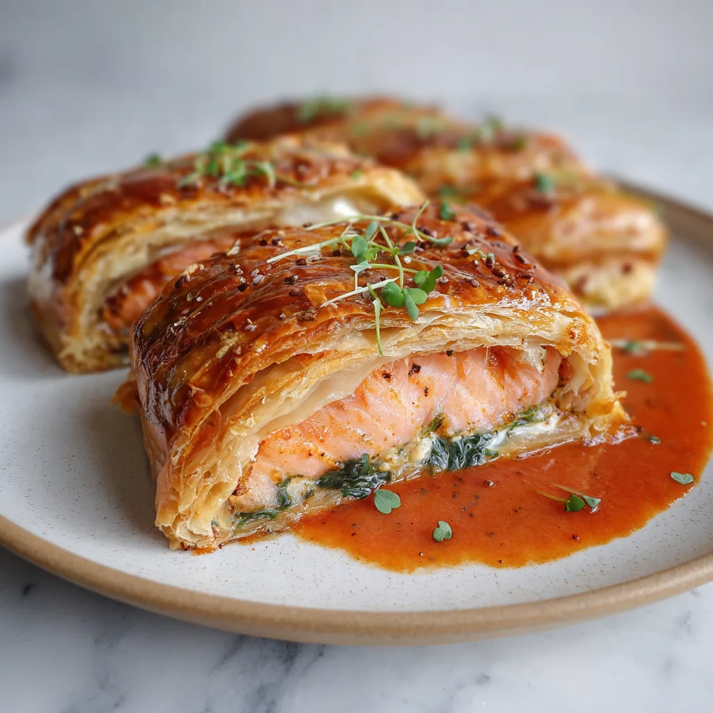 Cajun-Spiced Salmon Wellington with Roasted Red Pepper Sauce (Flaky, Buttery, and a Little Spicy)