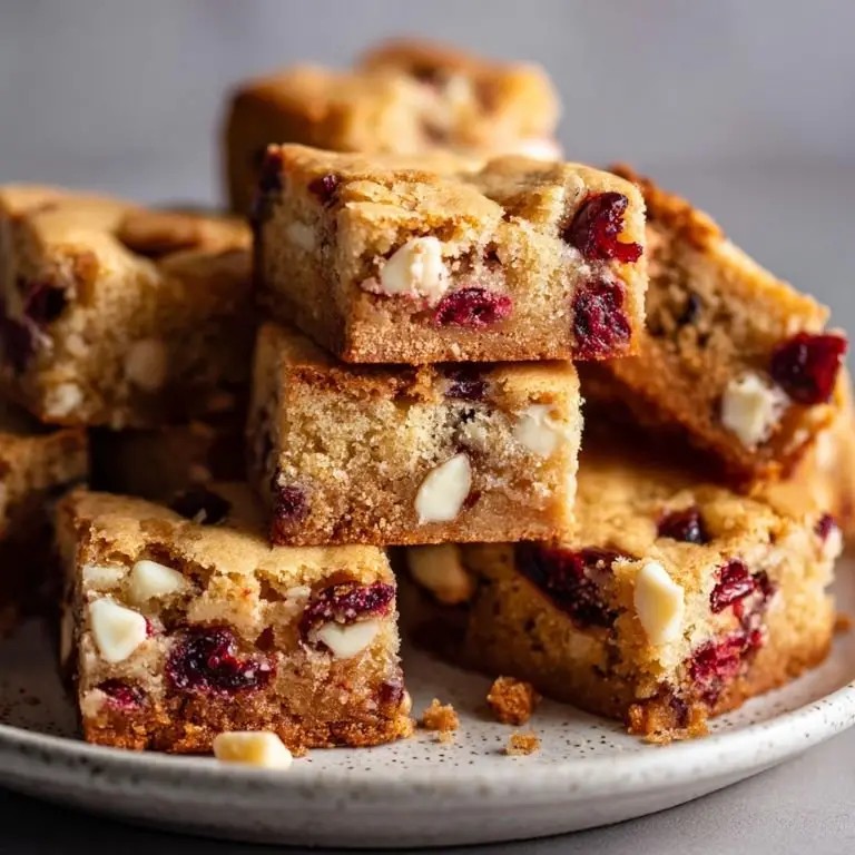 - Cheese boards: Add a few blondies to a dessert charcuterie board alongside aged cheddar, fresh grapes, and fig jam. The tart cranberries and sweet white chocolate balance savory elements beautifully.