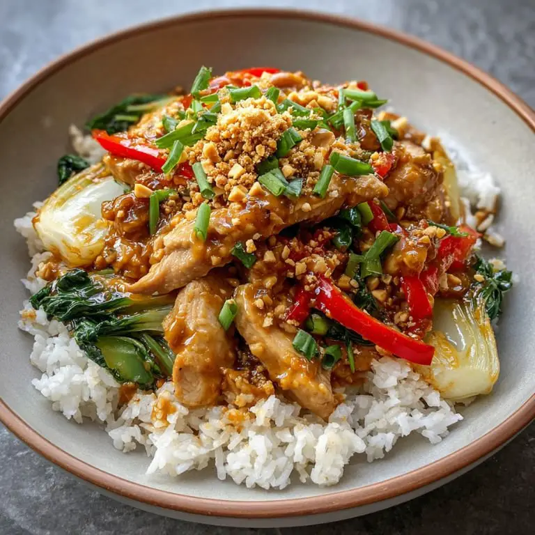 There’s something irresistible about Chinese takeout—the savory sauces, the tender protein, the crisp-tender veggies, and the comforting rice or noodles that bring it all together. This Chinese Takeout-Style Peanut Chicken with Bok Choy brings all of that flavor to your own kitchen, without needing to pick up the phone. Inspired by both peanut butter chicken and stir-fried chinese garlic chicken, this dish is a warm, nutty, and umami-packed stir-fry that pairs rich peanut butter sauce with juicy chicken and vibrant baby bok choy. It’s the kind of dinner that makes you feel like you really did something, even if you whipped it up in under 30 minutes. It also happens to make one of the best lazy dinners for weeknights—big flavor, minimal fuss.