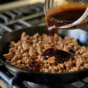 Pour the sauce over the beef and let it simmer for 2-3 minutes until it thickens slightly.