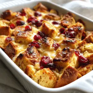 Toss the cubed bread and cranberries together in the greased baking dish. Pour the custard mixture evenly over the bread, pressing down gently with a spatula to make sure all the bread is soaked. Let it sit for 10 minutes so the bread can fully absorb the liquid.