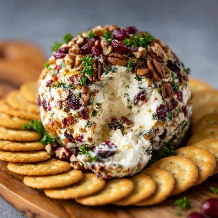 This cheese ball pairs beautifully with crisp white wines like Sauvignon Blanc or a chilled glass of sparkling Prosecco. If you’re looking for a non-alcoholic pairing, cranberry juice with a splash of seltzer complements the tart cranberries in the cheese ball.