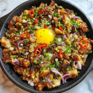 - Garlic fried rice (sinangag): the crisp garlic bits echo the crispy fish edges. If you want the full comfort-food situation, turn it into a silog plate with the egg stirred into the sisig and extra rice underneath.