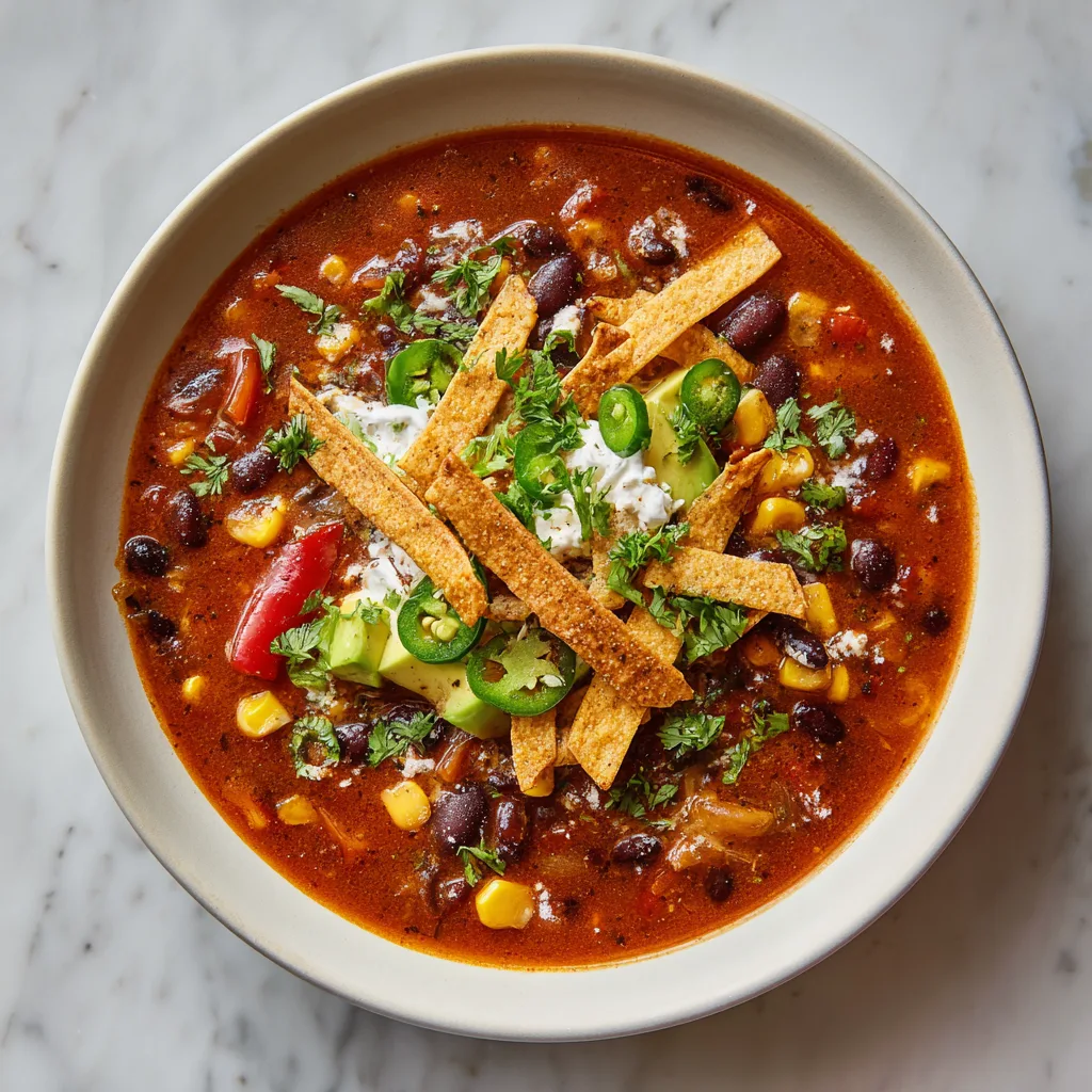 If you want a slightly creamy, restaurant-style texture: in a small bowl, whisk masa harina with warm water until smooth. Stir the slurry into the simmering soup and cook for 3 minutes, stirring often. The soup will thicken subtly and taste a little more like enchiladas and a little less like plain tomato-bean soup. If you don't have masa harina, you can crush 1 cup tortilla chips into a sandy crumb and stir them in; let the soup simmer 5 minutes to soften and thicken.