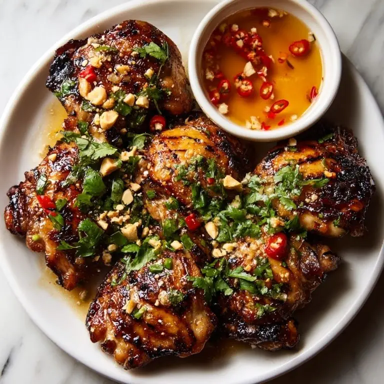 Grilled Vietnamese Chicken Thighs with Nuoc Cham is one of those dishes that surprises you with its simplicity but completely wins you over with its bold flavor. This recipe takes tender, marinated chicken thighs and chars them to juicy perfection over a hot grill, giving you that smoky, caramelized edge that’s totally irresistible. And then comes the nuoc cham—a zippy, tangy-sweet Vietnamese dipping sauce made with fish sauce, lime juice, sugar, garlic, and chili. It’s the flavor bomb that pulls everything together. Whether you’re already in love with Vietnamese cuisine or just dipping your toes into Asian grilled chicken recipes, this one is a winner. It’s ideal for an easy weeknight meal, summer cookouts, or when you’re simply craving something fresh and full of character.
