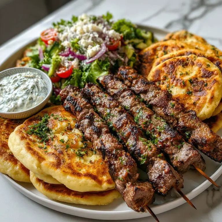 Nothing brings the flavors of Greece to life quite like tender, juicy lamb souvlaki wrapped in warm, homemade flatbread. Whether you're planning a Greek dinner party or just want to elevate your weekday meals, this lamb souvlaki recipe brings the Mediterranean right to your kitchen. The lamb is marinated in a bold blend of lemon, garlic, and herbs, grilled to perfection on skewers, and served with soft flatbreads and creamy tzatziki. This dish is packed with the sun-soaked spirit of Greek food and is guaranteed to be a hit with anyone who loves big, bold flavors and hearty, home-cooked meals.