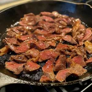 Heat a large skillet or grill pan over medium-high heat. Once hot, add the marinated beef in a single layer (avoid overcrowding). Sear for 1-2 minutes per side until caramelized and cooked through. Work in batches if needed.