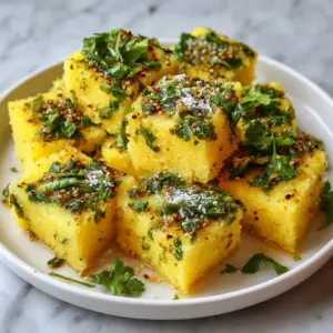 Khaman Dhokla with Green Chili Tadka