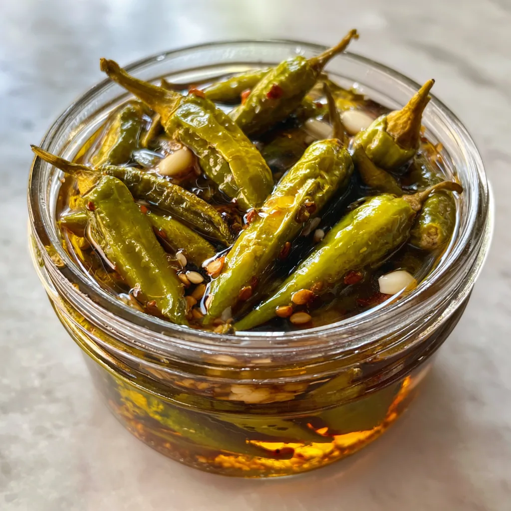 If your idea of a perfect bite is crunchy, briny, and just a little dangerous, these traditional Korean pickled green chili peppers are for you. This is gochu jangajji: green chiles tucked into a garlicky soy-vinegar brine that hits salty-sour-sweet in one go, with a slow-building heat that makes plain rice taste like a real meal. I like this version because it stays crisp (no sad, floppy peppers) and it's flexible: keep it classic and clean, or lean into aromatics like ginger and scallion. It's the kind of little side dish that quietly steals the show next to grilled meat, noodles, or a simple fried egg.