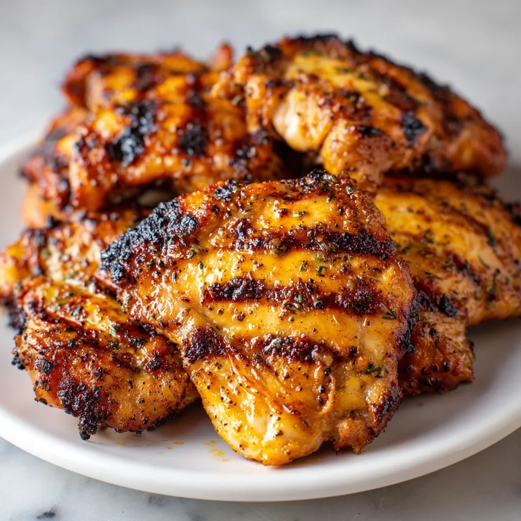 Flip and grill for 6 minutes on the second side. Check the thickest piece with an instant-read thermometer. Pull at 175 degrees F for thighs (they stay tender at a higher temp). If you used chicken breast instead, pull at 165 degrees F.
