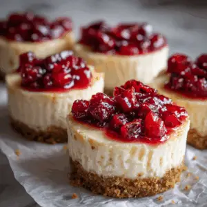 Once the cheesecakes are fully chilled, spoon a generous amount of cranberry compote on top of each one. Serve as-is or with a small dollop of whipped cream for an extra festive touch.