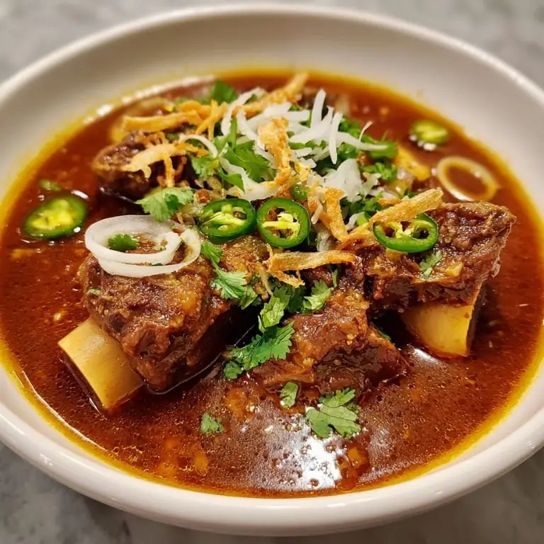 Ladle the nihari into bowls, top with reserved fried onions, chopped cilantro, julienned ginger, green chilies, and a squeeze of lemon. Serve piping hot with naan or kulcha.