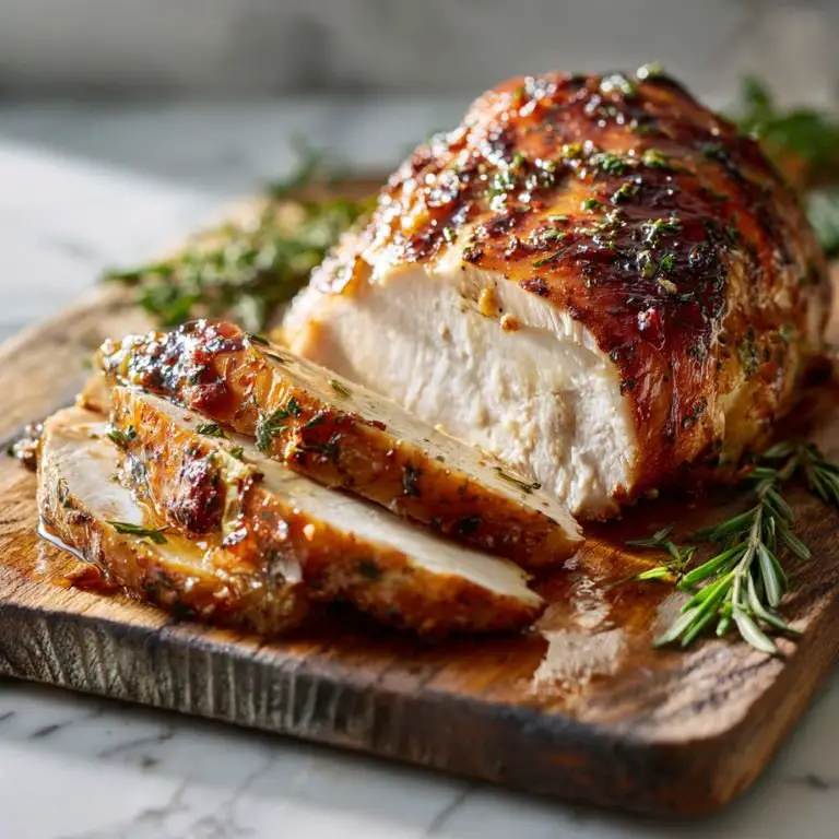 Once done, remove the turkey from the oven and let it rest, covered with foil, for at least 10–15 minutes. This helps the juices redistribute, making each slice incredibly tender. Then, carve and serve with a drizzle of the pan juices or a simple homemade gravy.
