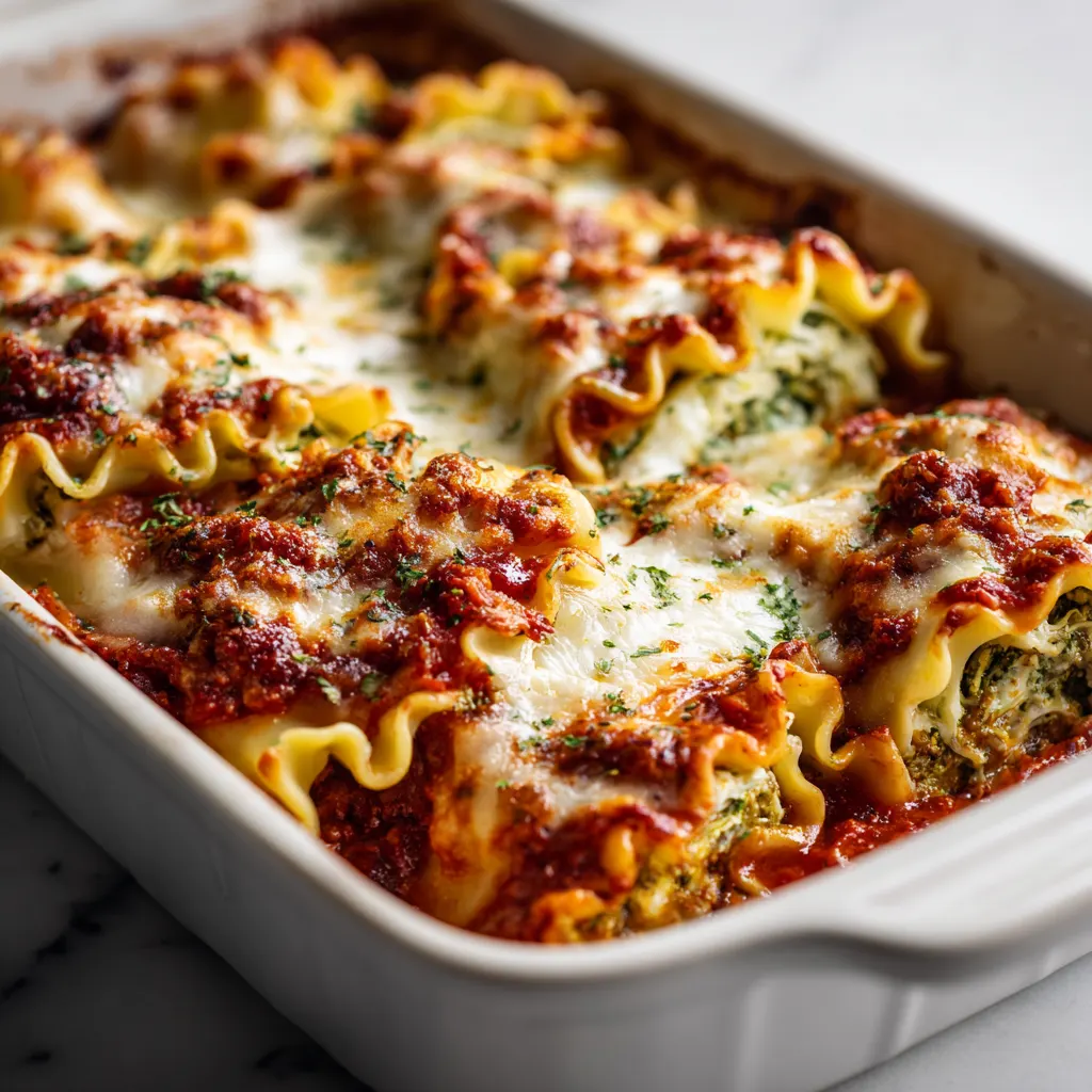 You can add cooked, shredded chicken thigh or chicken breast. Thigh stays juicier and is more forgiving if you reheat leftovers, while breast is leaner and works well if you season it aggressively (lemon, garlic, and salt). Stir 1 cup shredded cooked chicken into the filling, or layer 8 ounce browned crumbled Italian sausage in the sauce under and over the rolls. This keeps the roll up lasagna recipe structure intact without overstuffing the noodles.