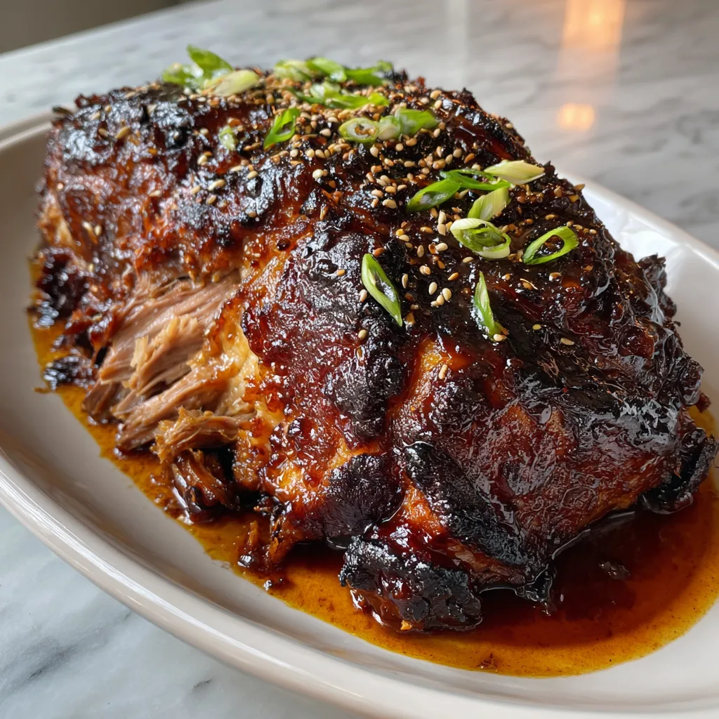 This spicy Asian-style pork roast is my weeknight-meets-weekend kind of flex: you drop a big, marbled pork shoulder into the slow cooker with ginger, garlic, soy, and chiles, then you finish it under the broiler with a glossy hoisin glaze that turns sticky at the edges like good BBQ candy. It's cozy enough to pile into rice bowls, loud enough to stuff into buns, and forgiving enough that you don't have to babysit it-basically the kind of pork roast recipe you keep in your back pocket for when you want dinner to taste like you worked harder than you did.