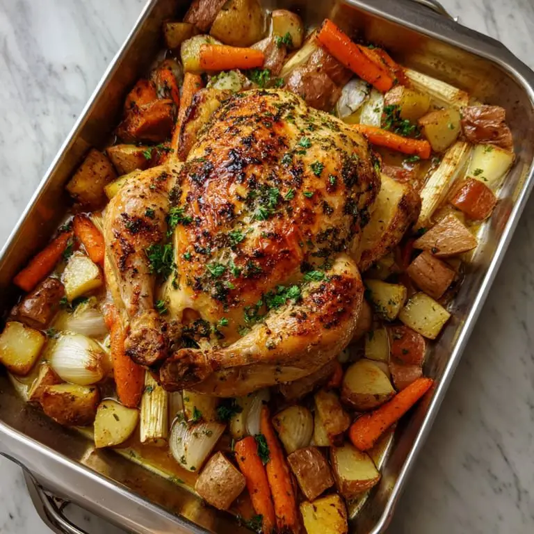 You can prep everything a day in advance: season the chicken, chop the veggies, and refrigerate separately. Let the chicken sit at room temperature for about 30 minutes before roasting to ensure even cooking. While it’s best freshly roasted, leftovers reheat beautifully.