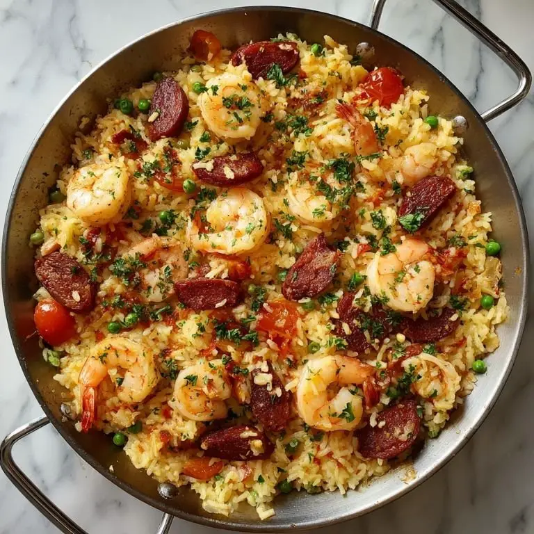 It’s best served fresh, but you can prep ingredients (chop veggies, slice chorizo, thaw shrimp) in advance. Leftovers can be reheated gently in a pan or even eaten at room temperature—some say that’s when the flavors are best.