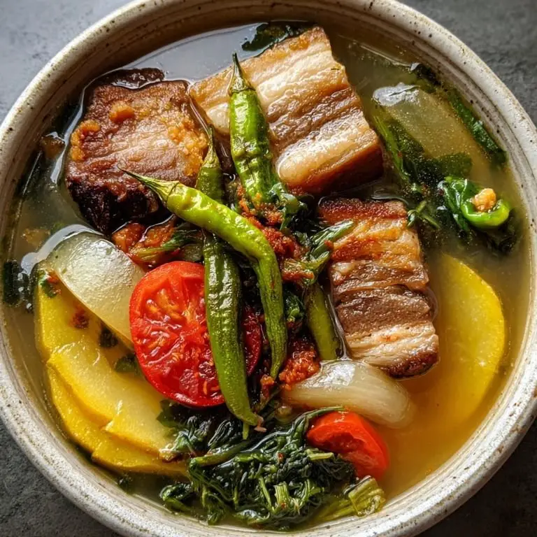 Sinigang na Baboy is one of those dishes that feels less like a recipe and more like a memory. If you grew up around Filipino food, chances are you’ve had a steaming bowl of this pork and tamarind soup on a rainy afternoon, served with rice and maybe a side of fish sauce with chili. It’s sour, savory, comforting, and incredibly forgiving to cook. This version stays true to classic flavors while offering enough detail for home cooks who want consistent, deeply flavorful results every time. Whether you’re exploring filipino cuisine for the first time or revisiting one of the best filipino recipes you already love, this dish delivers comfort in every spoonful.