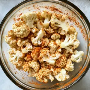 by tossing the florets in a large bowl with olive oil, salt, black pepper, garlic powder, smoked paprika, and cayenne pepper (if using). Ensure each piece is well coated.
