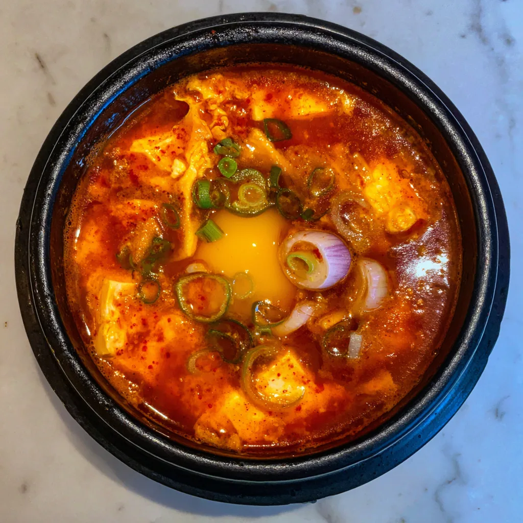 There's something magical about a bubbling pot of sundubu jjigae arriving at your table in a traditional stone bowl, steam rising and the vibrant red broth promising warmth and comfort. This Korean soft tofu soup is one of those dishes that feels like a warm hug on a cold day, with silky soft tofu swimming in a spicy, umami-rich broth alongside tender seafood. I fell in love with this dish during my first visit to a Korean restaurant, and I've been making it at home ever since. The beauty of sundubu jjigae lies in its simplicity-you don't need fancy techniques or hard-to-find ingredients to create something that tastes absolutely restaurant-quality. The soft, almost custard-like texture of the tofu contrasts beautifully with the bold, spicy broth, while the seafood adds a sweet brininess that ties everything together. Whether you're new to Korean cooking or a seasoned pro, this recipe will become your go-to comfort food.