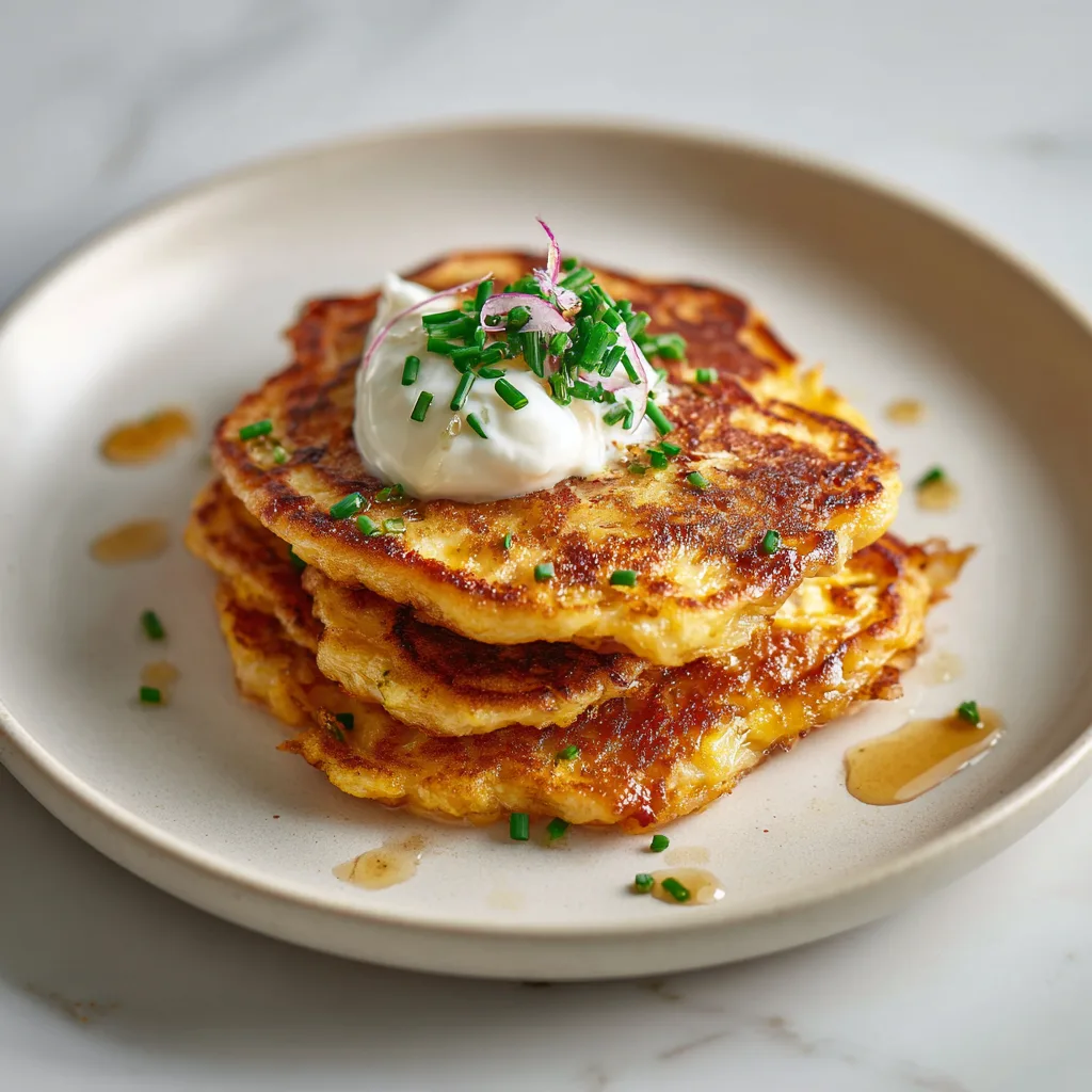 Serve hot with sour cream or Greek yogurt, chives, and pickled onions. For a breakfast potato pancakes vibe, top with a fried egg and a few shakes of hot sauce. For a sweet-salty brunch moment, add the tiniest drizzle of maple syrup.