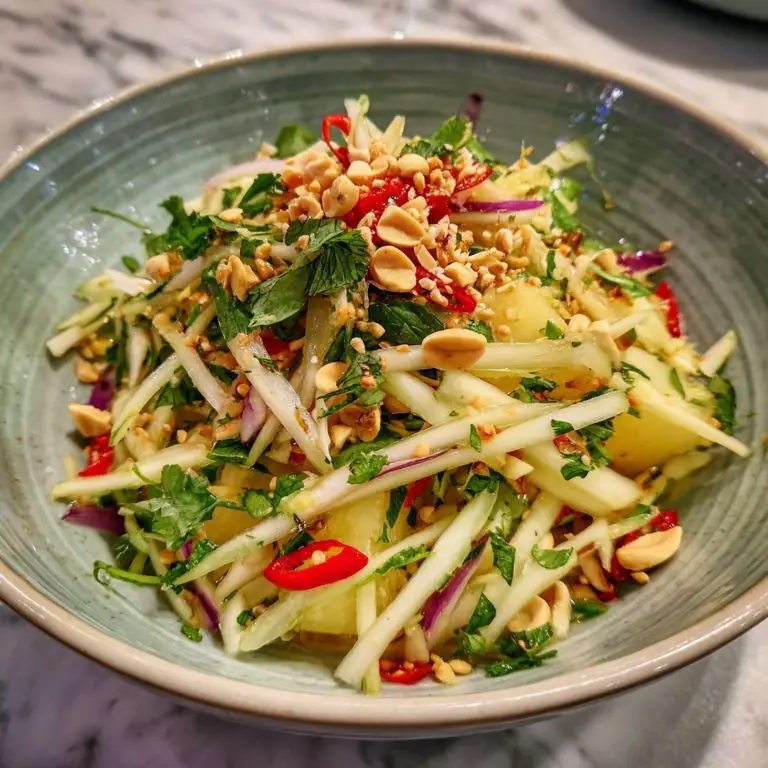 Fresh, vibrant, and packed with the bold flavors of Southeast Asia, this Tangy Thai Mango Salad with Cilantro and Shallots is one of those dishes that makes you feel like summer never left your plate. Crisp, tangy green mango shreds are tossed with zesty lime juice, fiery chili, aromatic cilantro, and punchy shallots—creating a salad that's light but unforgettable. It’s a dish that’s not only full of texture and flavor but also incredibly versatile, earning its spot among truly delicious salads. Whether you’re looking for something to brighten up your grilled meats or a stand-alone light lunch, this authentic Thai mango salad recipe has you covered.