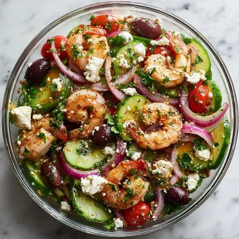 If you're looking for something fresh, light, and bursting with bright Mediterranean flavors, this Greek Shrimp Salad with Kalamata Olives and Cucumber will hit all the right notes. It’s a dish that screams summer by the sea, but it's just as perfect for a cozy lunch or a quick, healthy dinner any time of year. Inspired by classic greek shrimp recipes, this salad combines plump, tender shrimp with crisp cucumber, juicy cherry tomatoes, creamy feta, and the bold bite of kalamata olives. A simple lemon-oregano vinaigrette ties it all together, giving it that signature tang you'd expect from your favorite easy greek recipes.