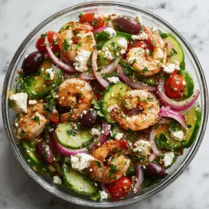Great idea. While this salad is fresh and raw-based, you can sauté the shrimp in a light tomato sauce and finish with crumbled feta for a twist that leans into the shrimp saganaki recipe territory. It's a fusion of the shrimp saganaki with feta flavor profile with the cooling crunch of a salad.